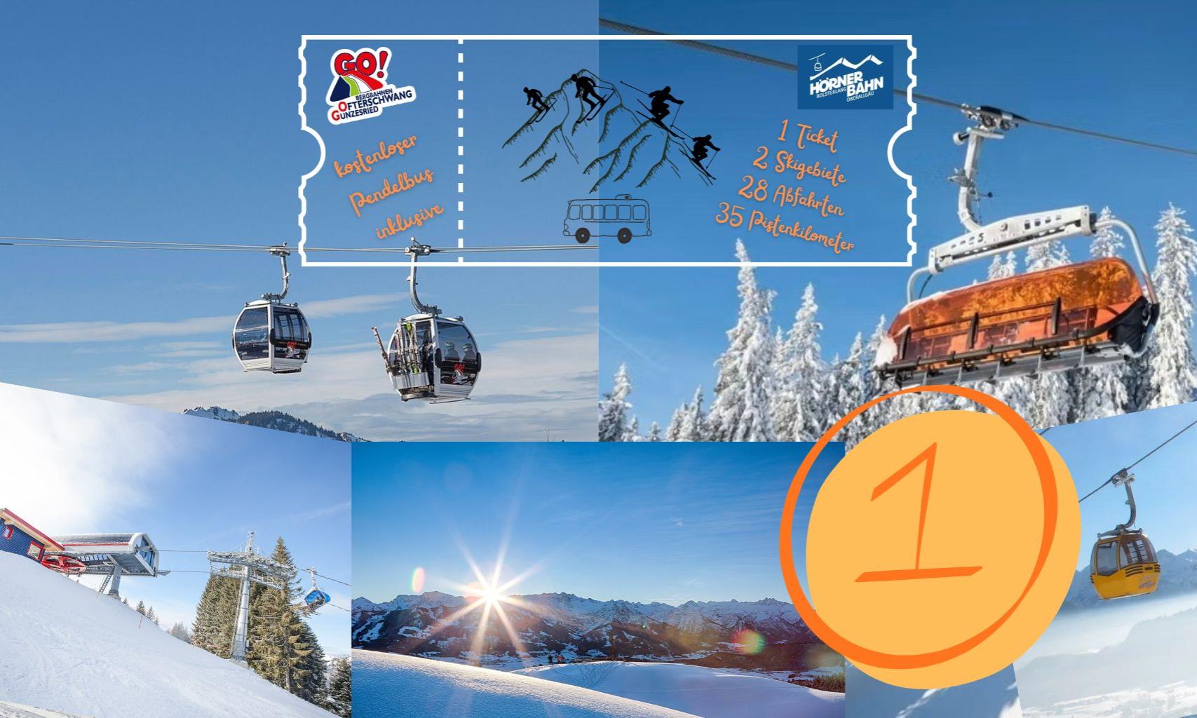 With just one ticket, you can make the most of your perfect day of skiing. There are two ski areas available with a total of 35 kilometers of varied slopes for young and old. When snow conditions are optimal, you can enjoy 28 runs of the finest skiing and the option of traveling between the Hörnerbahn and the Ofterschwang-Gunzesried mountain railway as you wish with the free shuttle bus. A total of up to 13 lifts are available (depending on actual snow conditions).